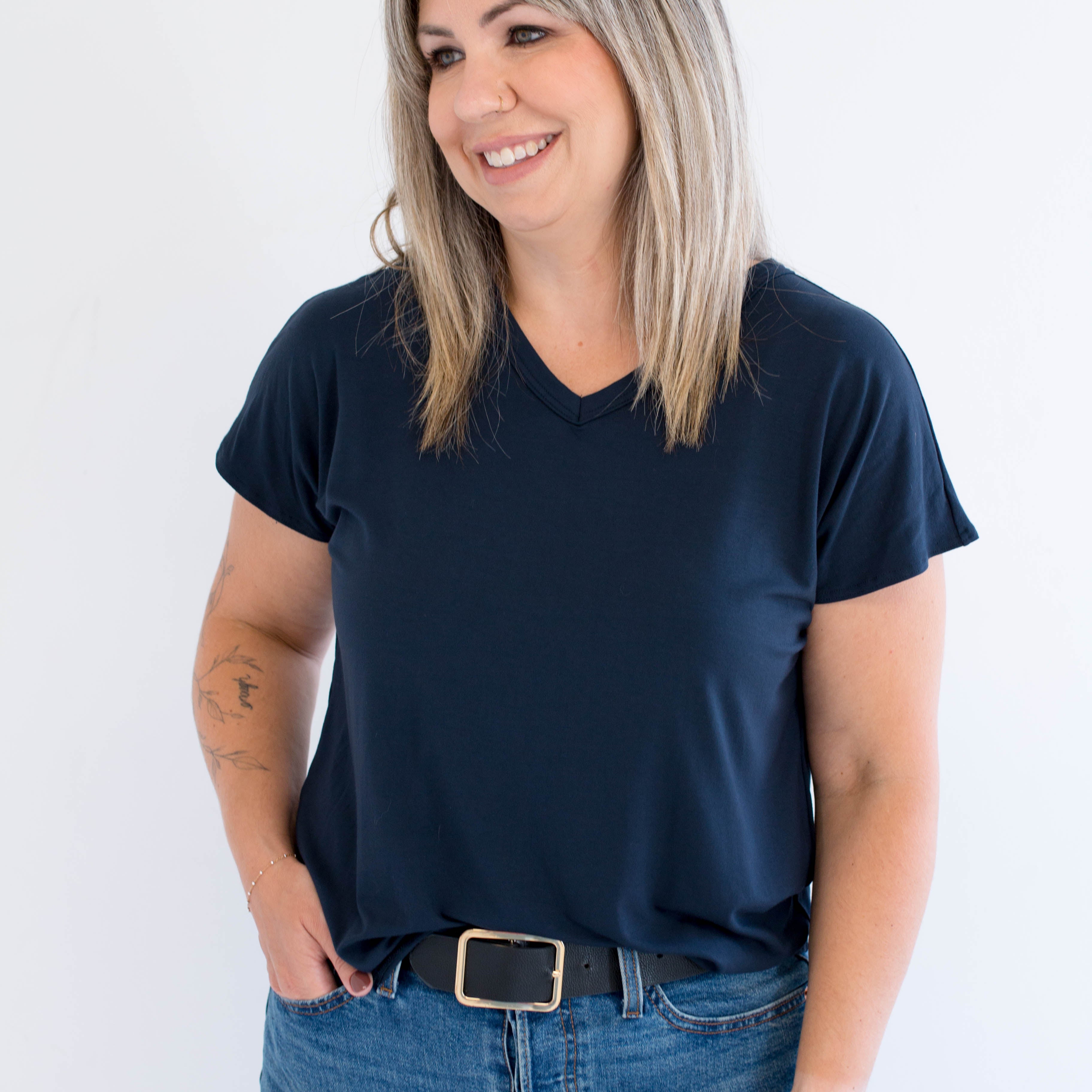 I love my Benny tee. I’m so happy it now comes in navy. I have it in white and black and now navy. I wear them on repeat. So soft and comfy!