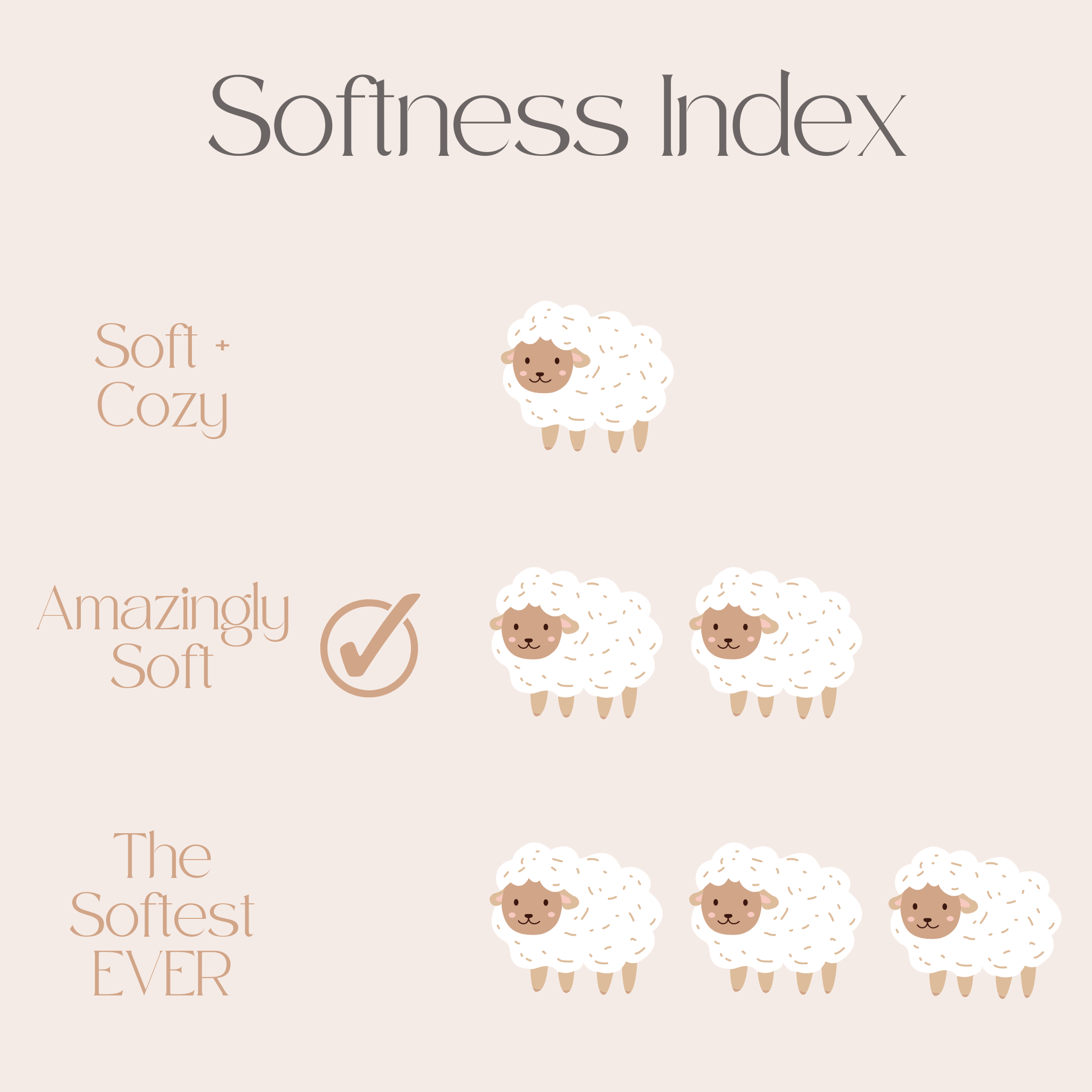 Each product is guaranteed to be super soft and comfy. In the product photos, you will find each product's softness rating on our unique softness index.
