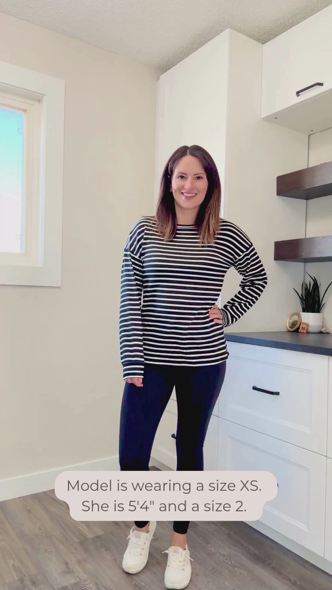 This top is a great piece to add to any wardrobe. The fabric is soft and light, so it’s good for layering or for those who run hot. It’s very breathable. The wrist cuff are nice, definitely not tight. The bottom is open so not a true sweatshirt but it’s great for tucking. As for sizing, I’m usually between a large and a medium and I got a large in this. I definitely could have worn a medium as it’s a looser fit. It fits well in the bust and the has lots of room through the midsection. I did find it just a tad long. I’m 5’6” and would have preferred it to be just an inch shorter.