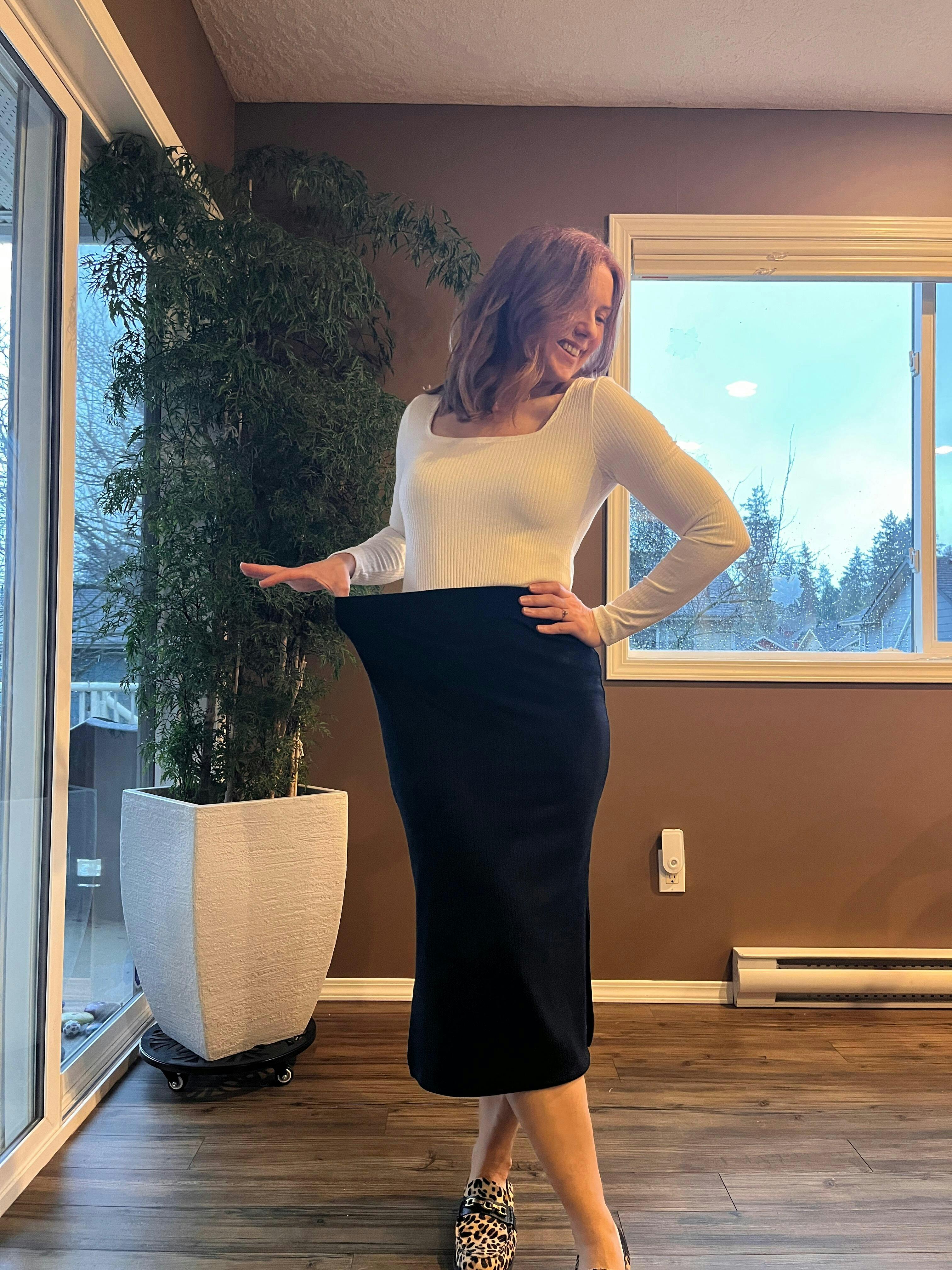 This skirt is a must- have for any closet. It’s very versatile and super comfortable. No digging at the waist. I get compliments every time I wear it!