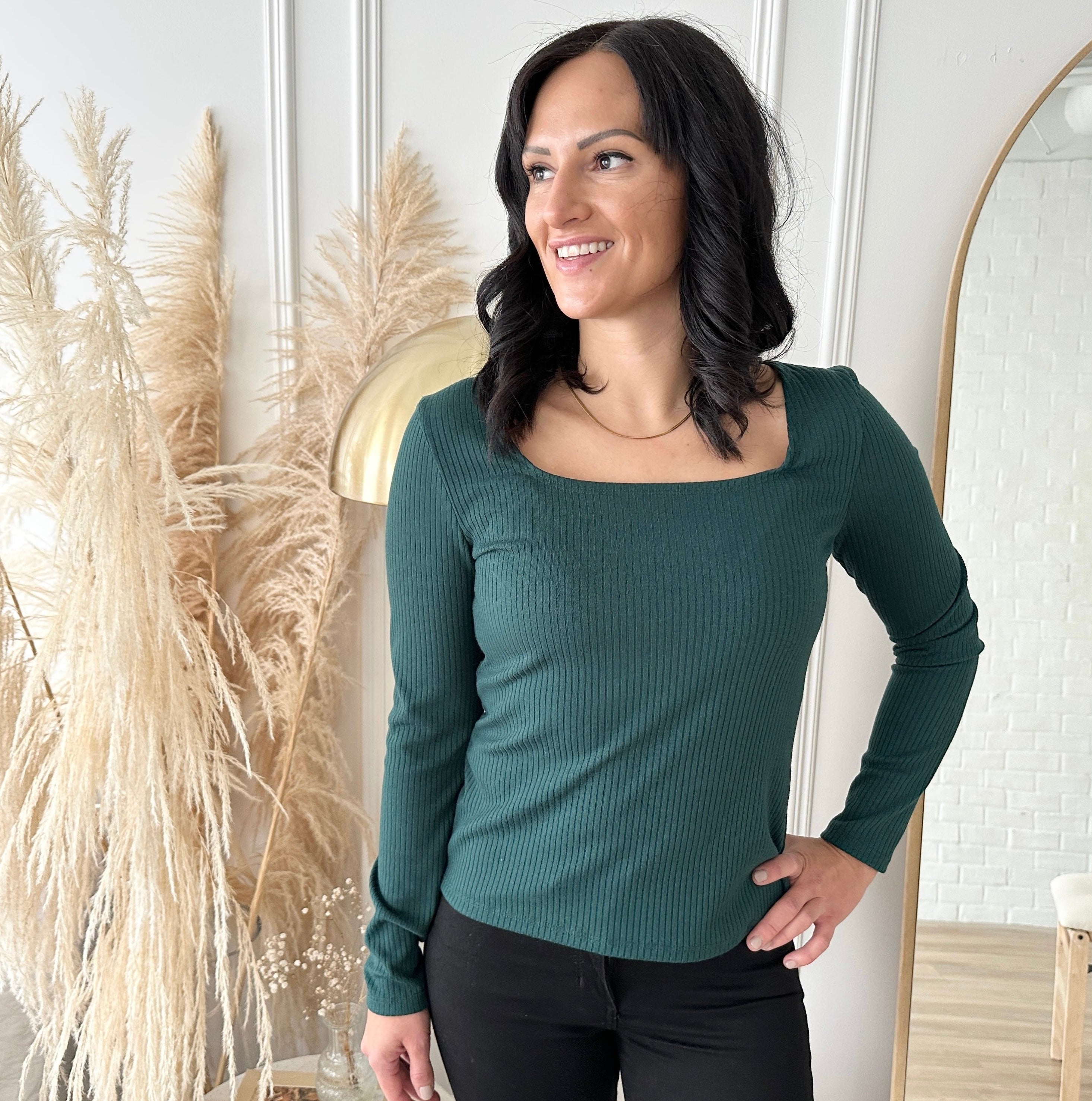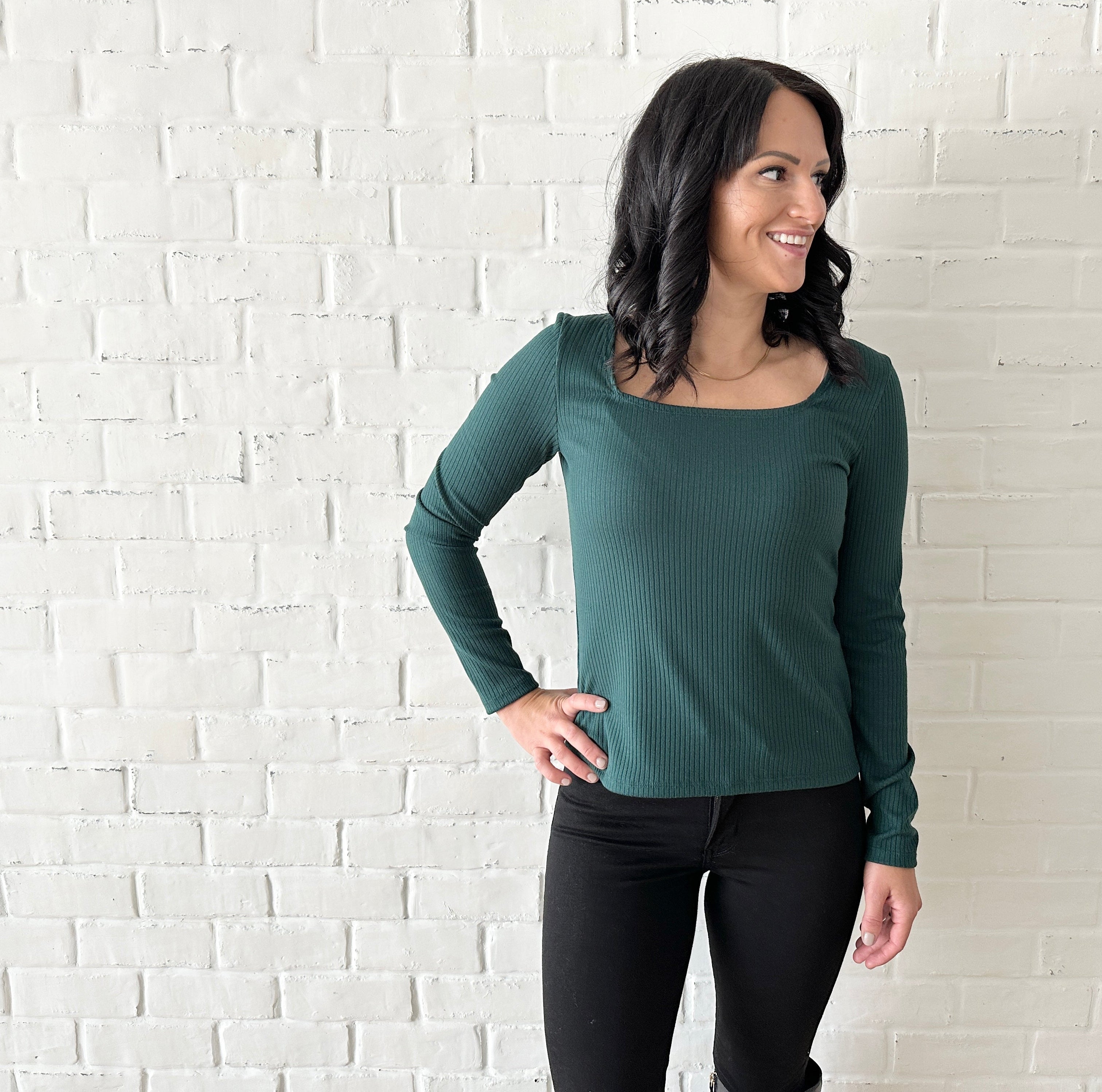 [PRE-ORDER] Tracey square neck long sleeve top in juniper